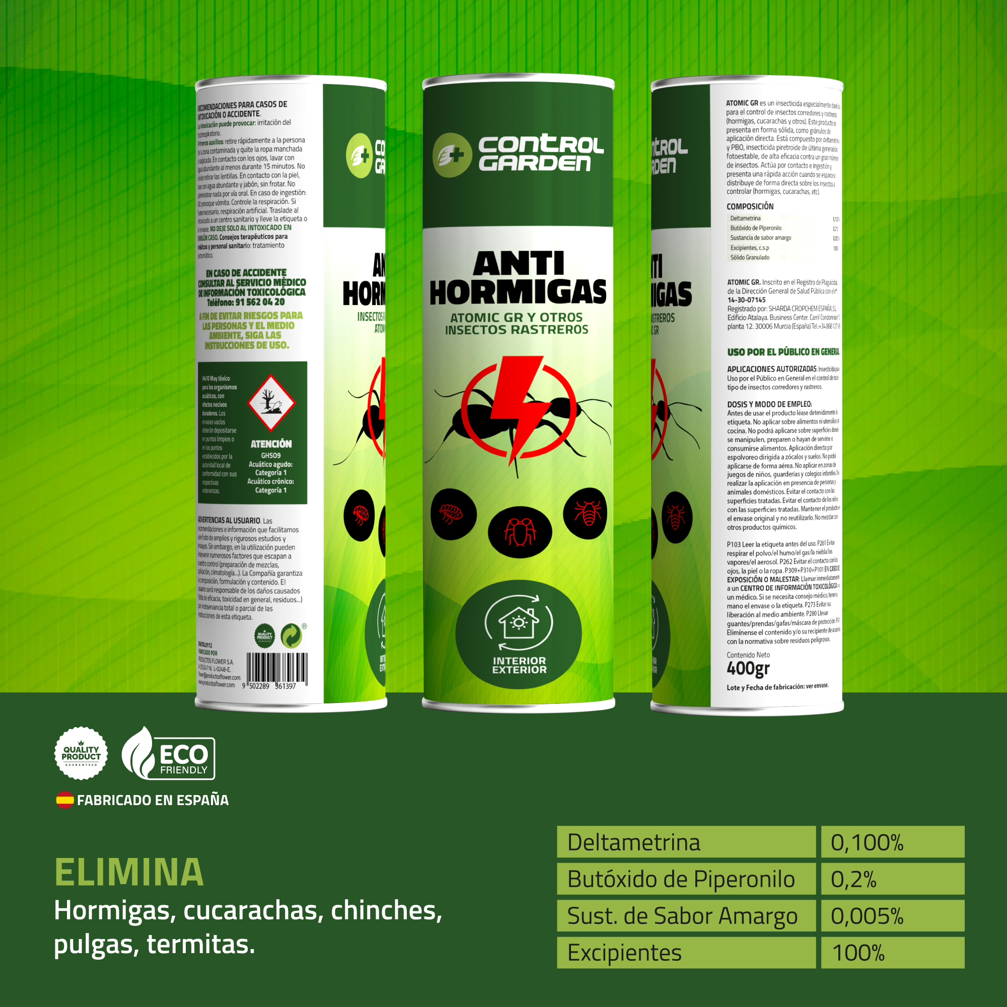 - Insectos objetivo: Hormigas y otras plagas rastreras.