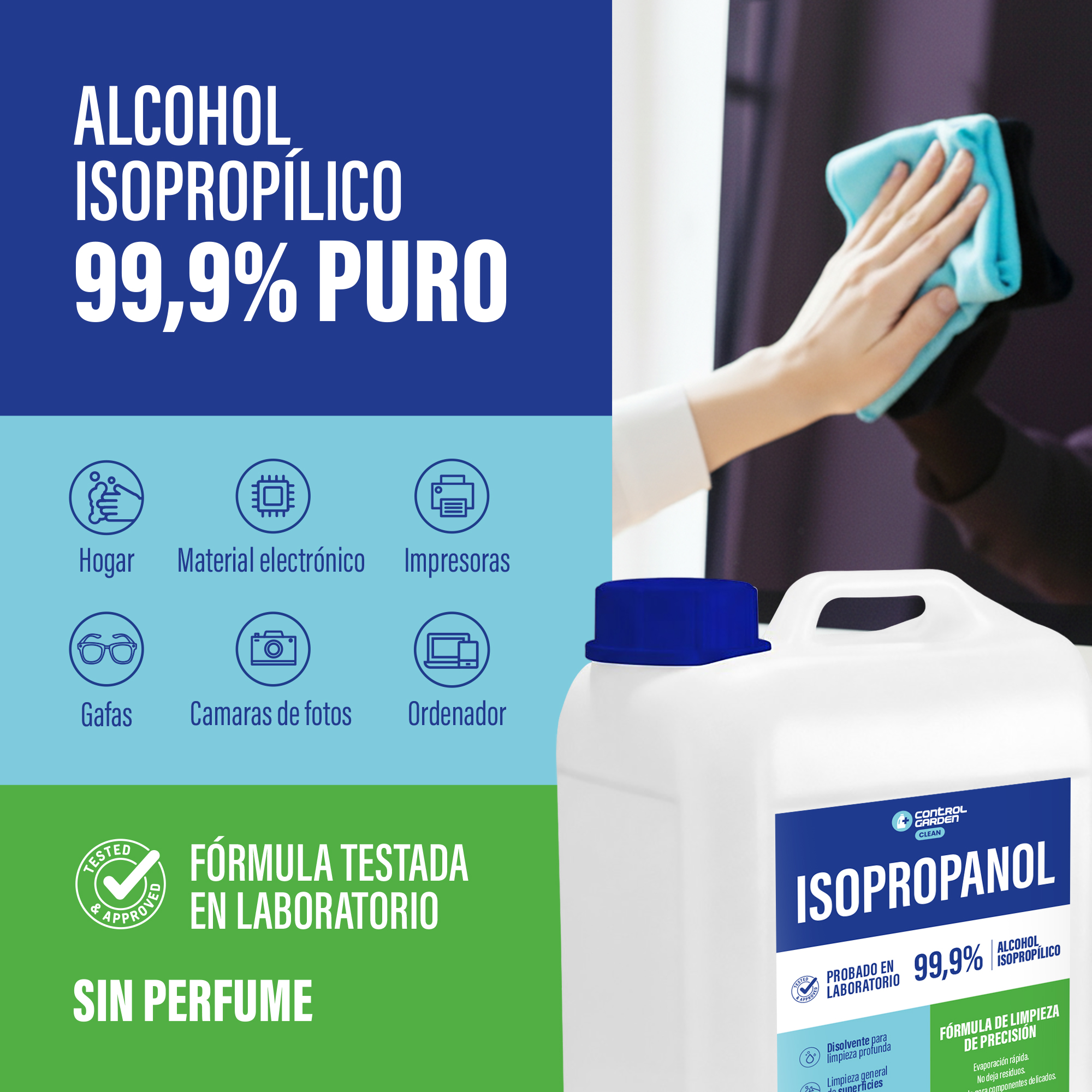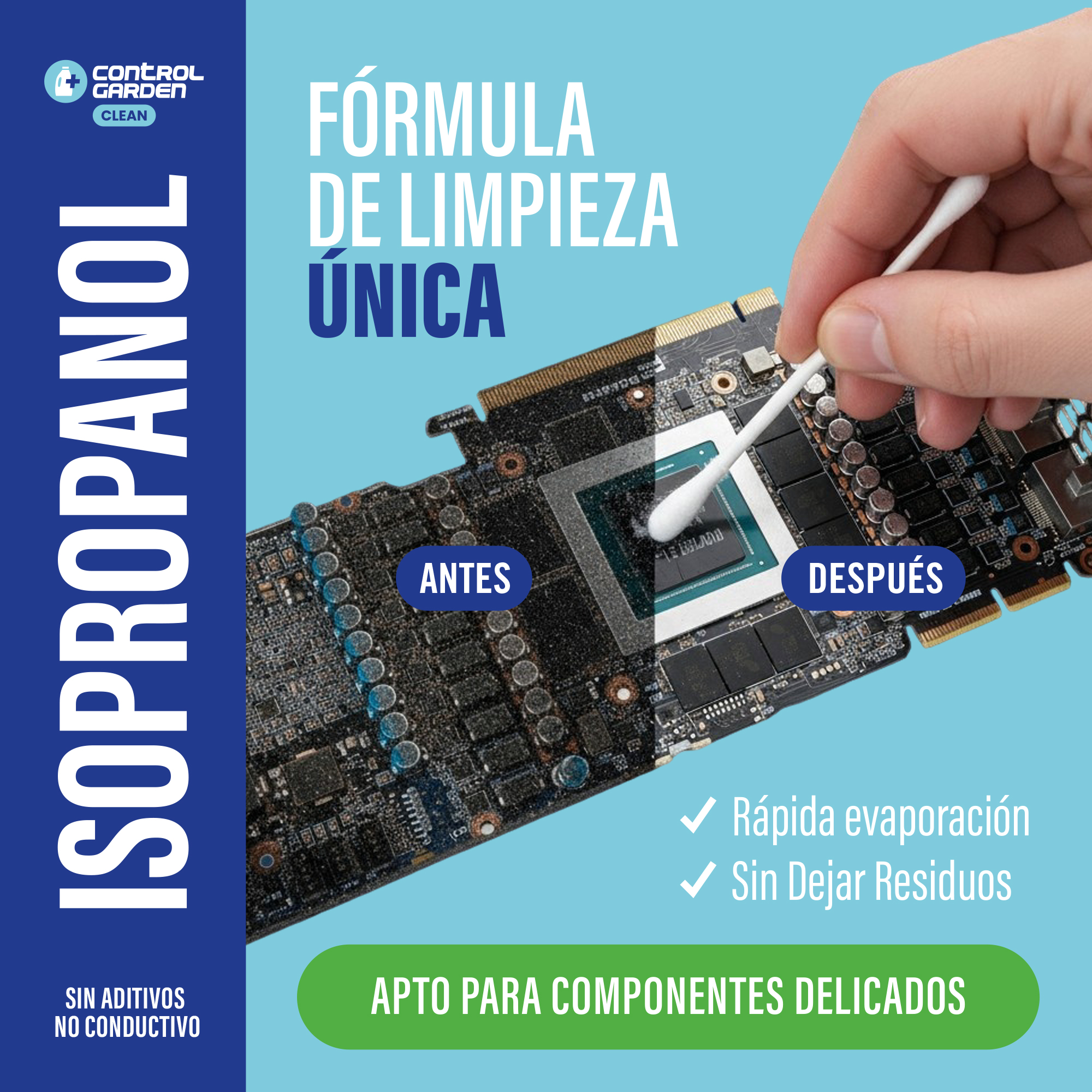 En Control Garden sabemos que en muchos entornos profesionales la limpieza no es algo puntual, sino una tarea constante. Por eso hemos desarrollado nuestro alcohol isopropílico Control Garden 10 litros, un formato pensado para quienes necesitan un suministro continuo de un producto fiable, eficaz y sin residuos para sus trabajos de mantenimiento y limpieza técnica.