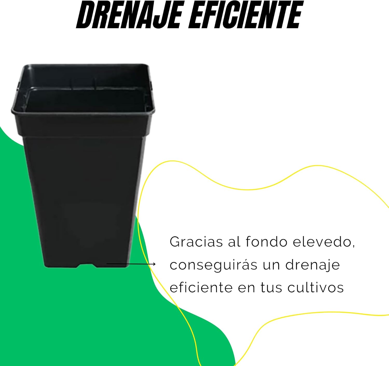 - Drenaje eficiente: Cuentan con una base elevada y orificios de drenaje que evitan el encharcamiento, asegurando un desarrollo óptimo de las raíces.