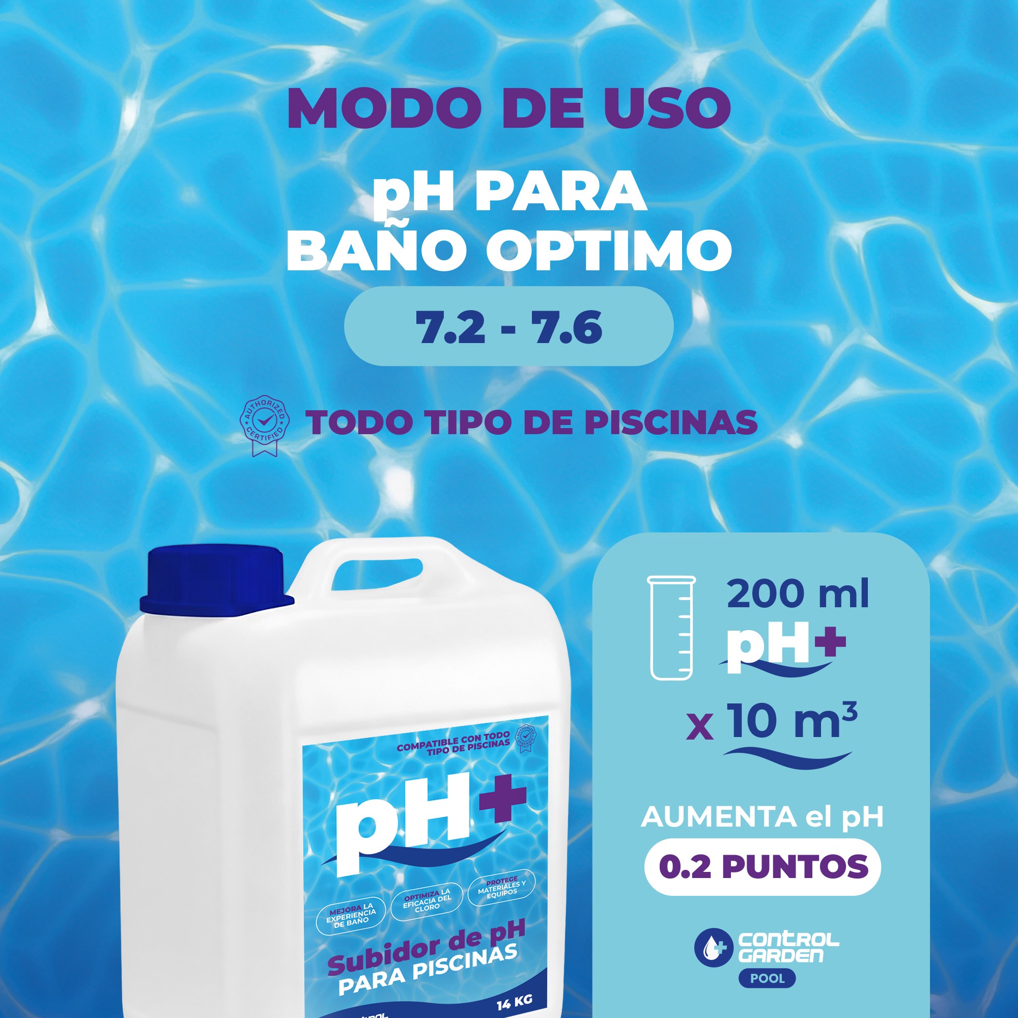 El subidor de pH líquido Control Garden 10 litros está pensado para quienes necesitan mantener el equilibrio del agua de la piscina de forma regular y sin complicaciones. Cuando el pH se sitúa por debajo de los valores recomendados, el agua se vuelve más agresiva, los tratamientos pierden eficacia y el baño deja de ser tan agradable. Con este incrementador de pH para piscinas puedes corregir ese deseajuste de manera sencilla y con resultados estables.
