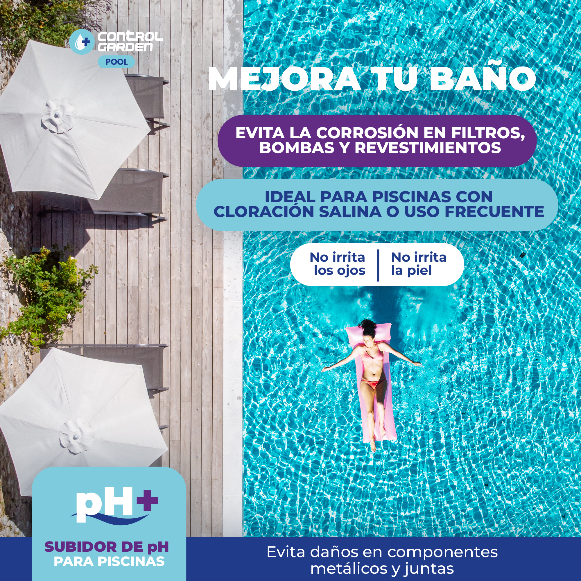 Los productos de Control Garden están diseñados para simplificar el cuidado de la piscina y ofrecer resultados constantes. Este subidor de pH líquido es fácil de dosificar, compatible con los sistemas de filtración habituales y se integra sin problemas en cualquier rutina de mantenimiento.