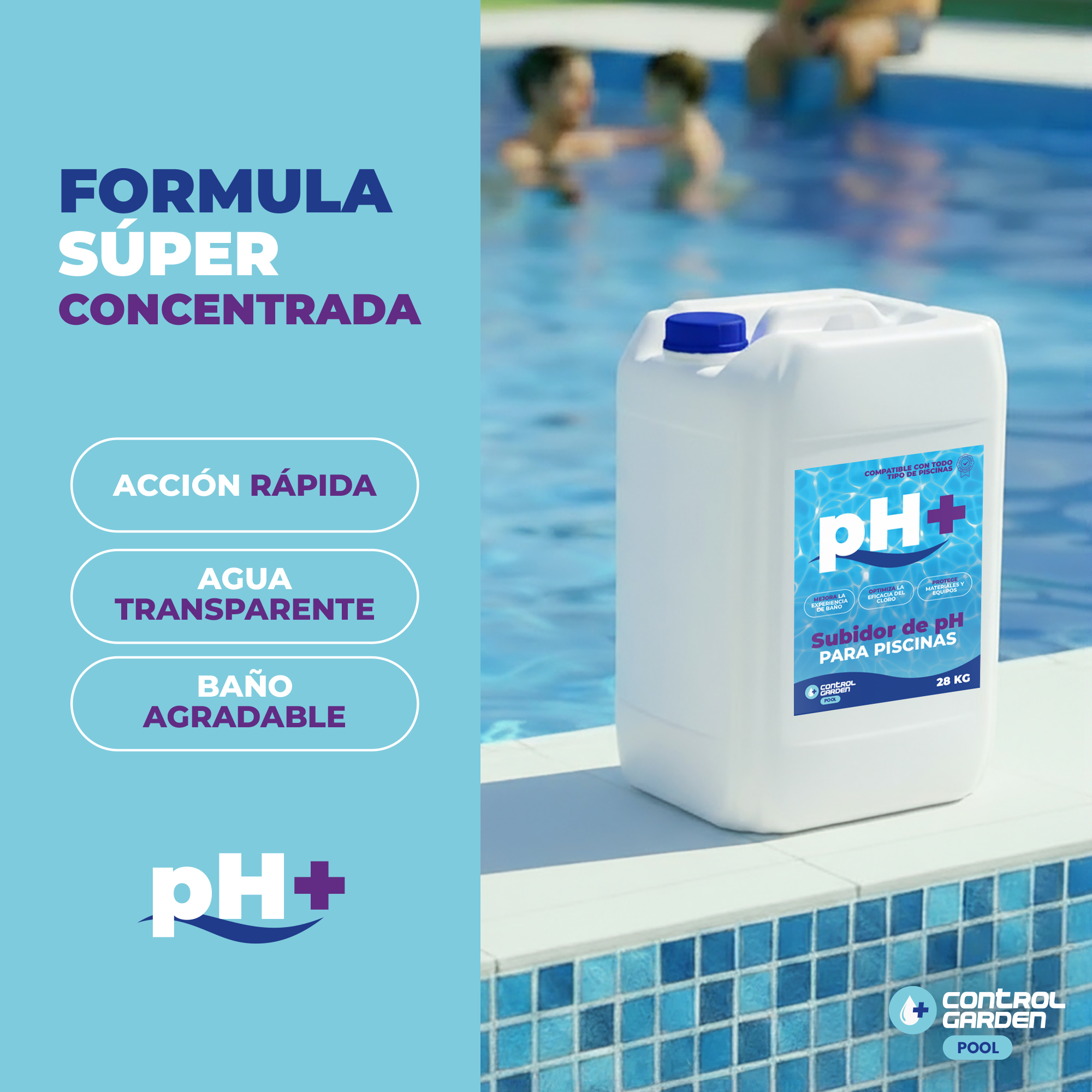 Con el subidor de pH líquido Control Garden en formato 20 litros tendrás la tranquilidad de contar con un producto pensado para grandes volúmenes de agua, que te ayudará a mantener tu piscina en perfectas condiciones durante toda la temporada.